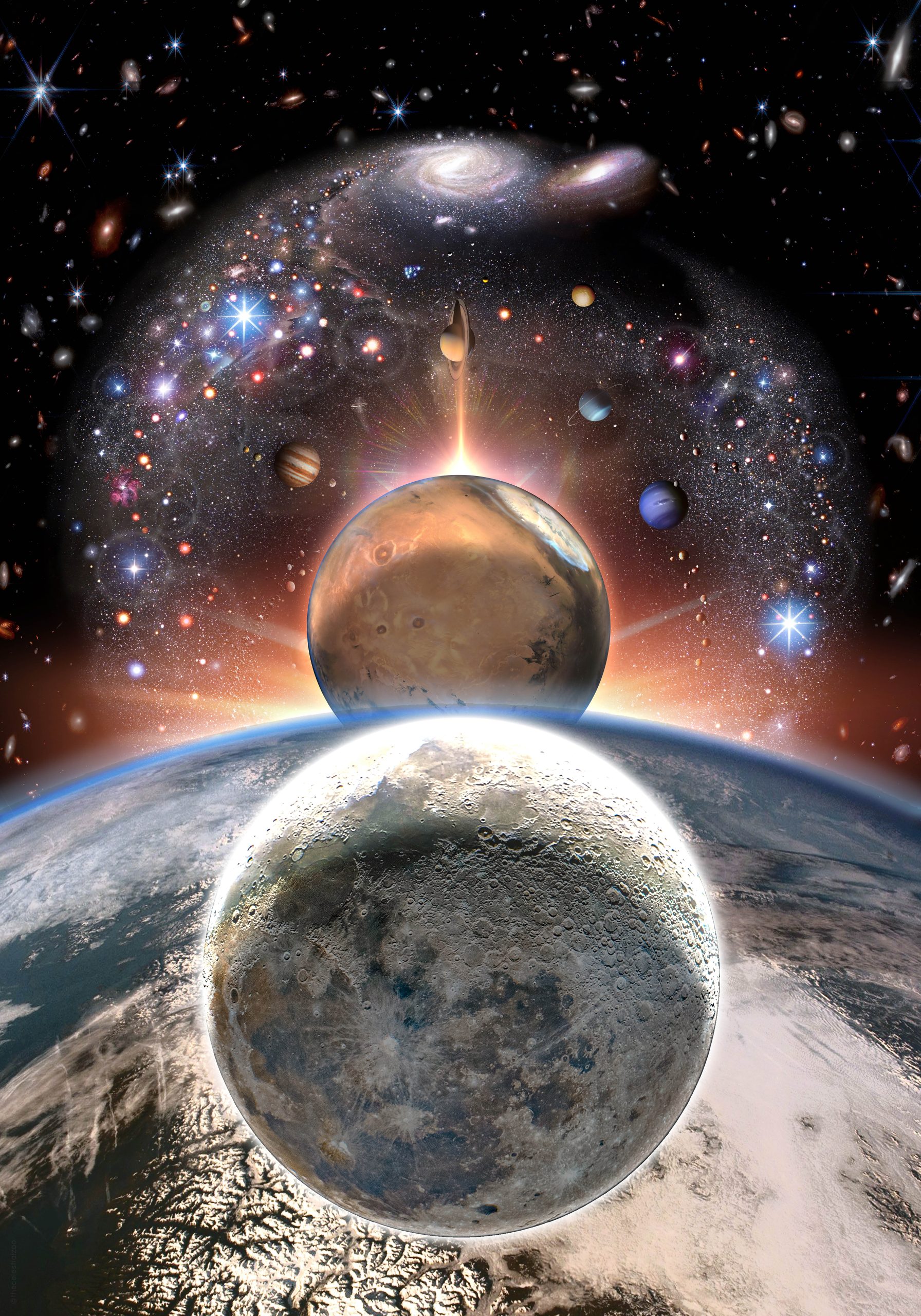 Moon, Earth, Mars, and galaxies!