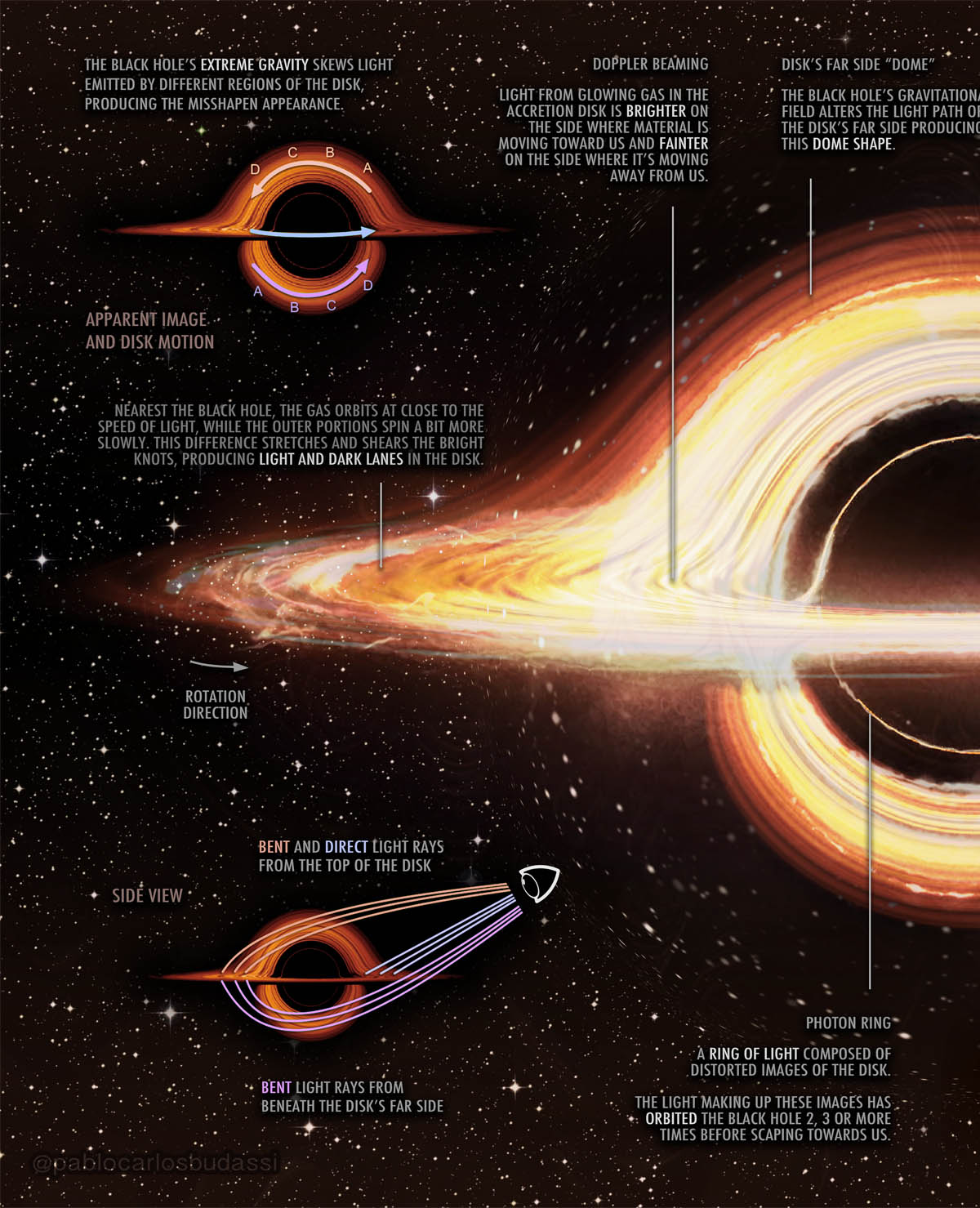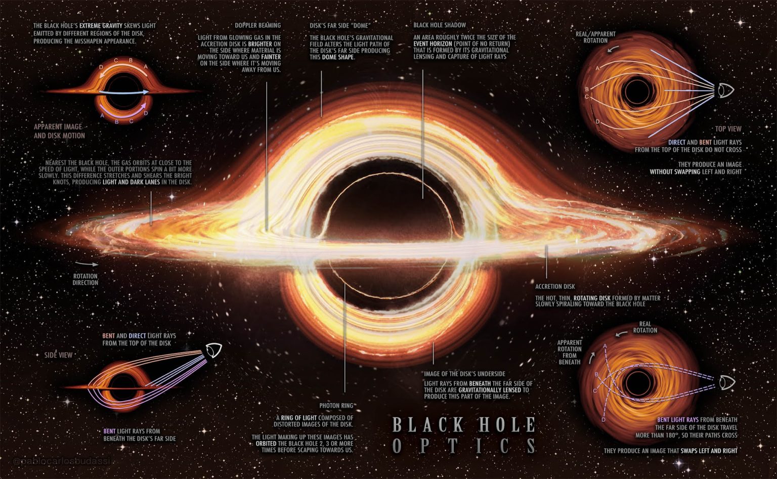 This is a remix/derivative of NASA’s Black Hole Orrery. Black hole images and temperature maps created by: NASA’s Goddard Space Flight Center/Andrew J Christensen. Factsheets and overall poster composition by Pablo C. Budassi in September 2023.
