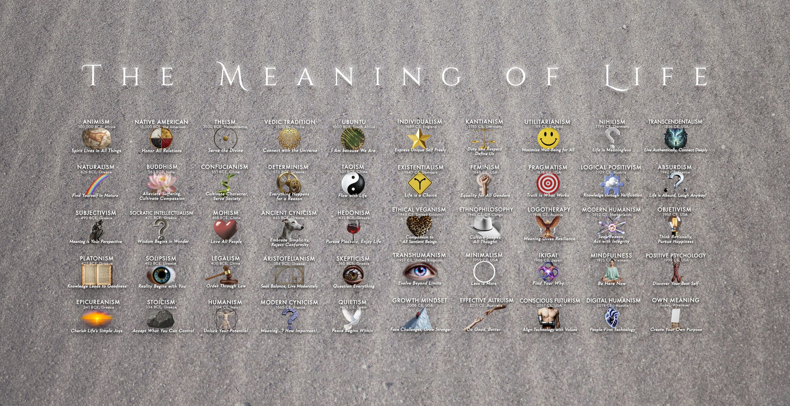 Ultimately, this timeline reveals that the “meaning of life” is not a single, static answer, but an evolving conversation that has spanned millennia. Whether you find resonance in the ancient connection of Animism, the disciplined resilience of Stoicism, or the forward-thinking ethics of Digital Humanism, each philosophy offers a unique tool for navigating existence. As the final entry suggests, the most powerful interpretation is the one you construct for yourself; the canvas is yours to define.