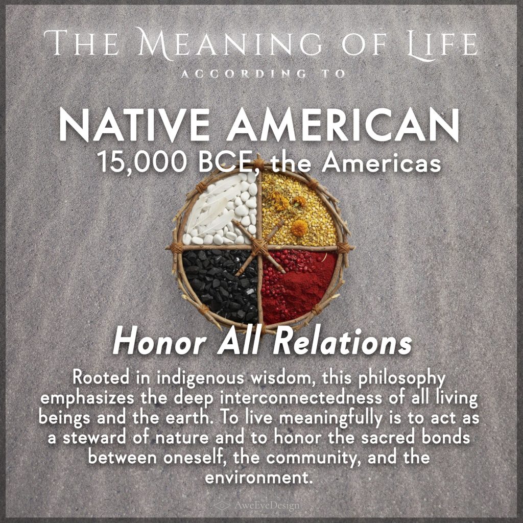 Rooted in indigenous wisdom, this philosophy emphasizes the deep interconnectedness of all living beings and the earth. To live meaningfully is to act as a steward of nature and to honor the sacred bonds between oneself, the community, and the environment.