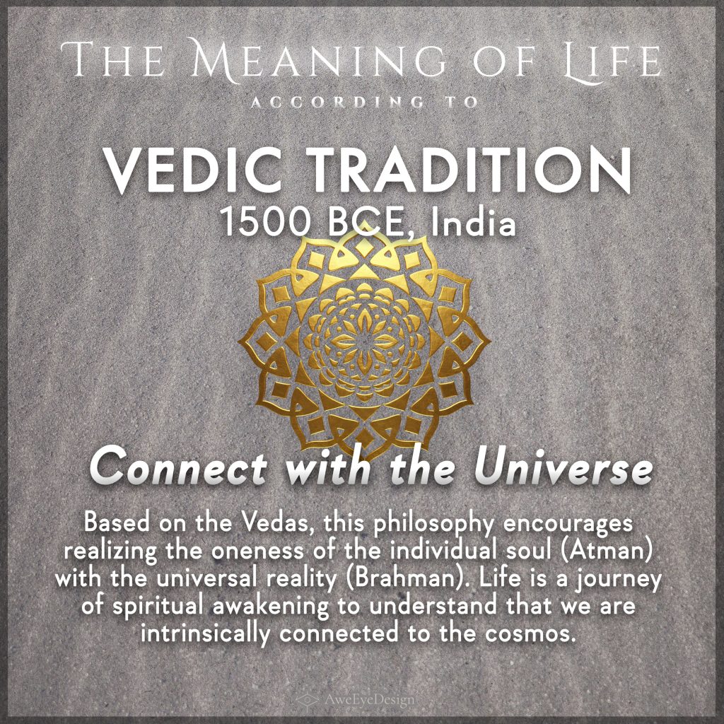 Based on the Vedas, this philosophy encourages realizing the oneness of the individual soul (Atman) with the universal reality (Brahman). Life is a journey of spiritual awakening to understand that we are intrinsically connected to the cosmos.