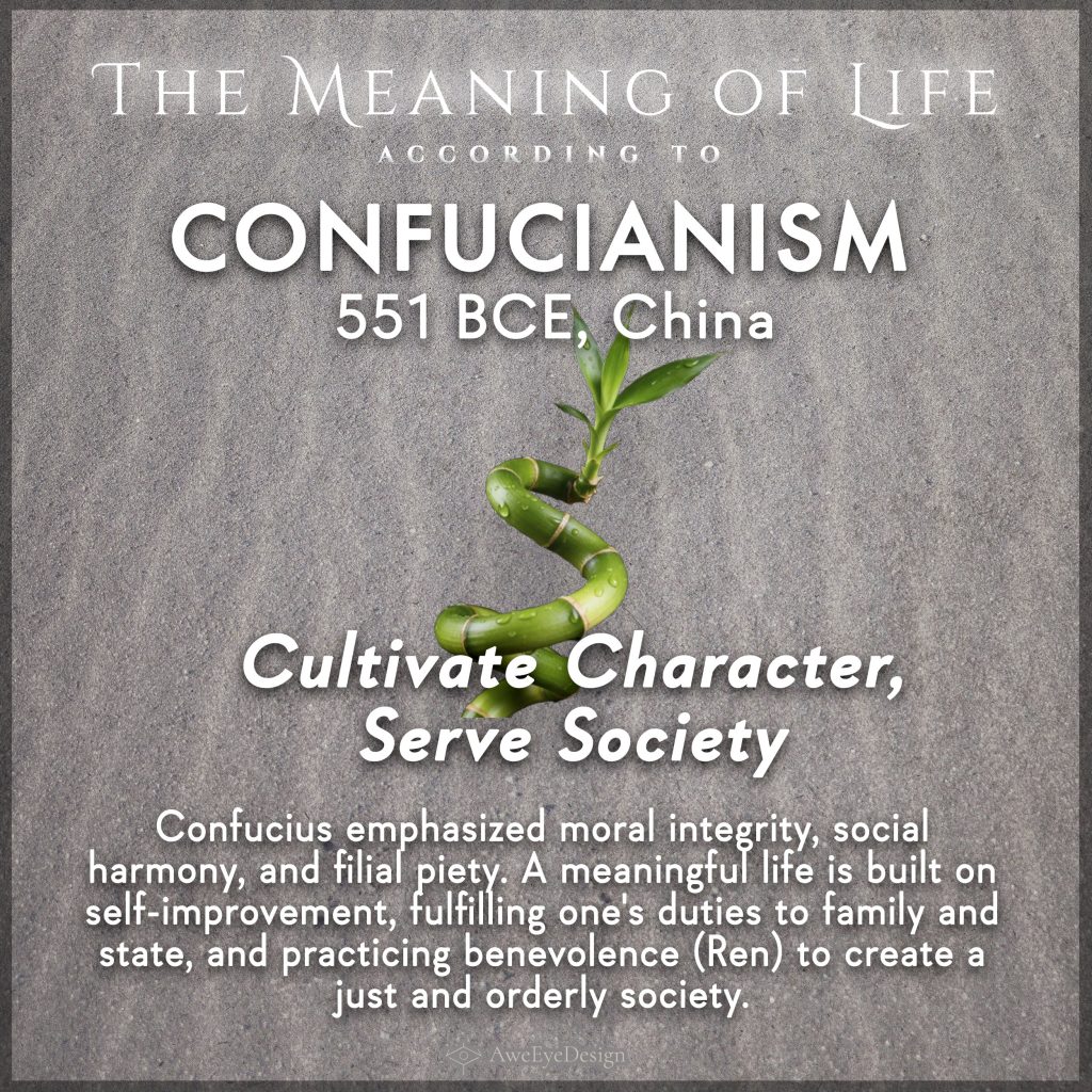 Confucius emphasized moral integrity, social harmony, and filial piety. A meaningful life is built on self-improvement, fulfilling one’s duties to family and state, and practicing benevolence (Ren) to create a just and orderly society.