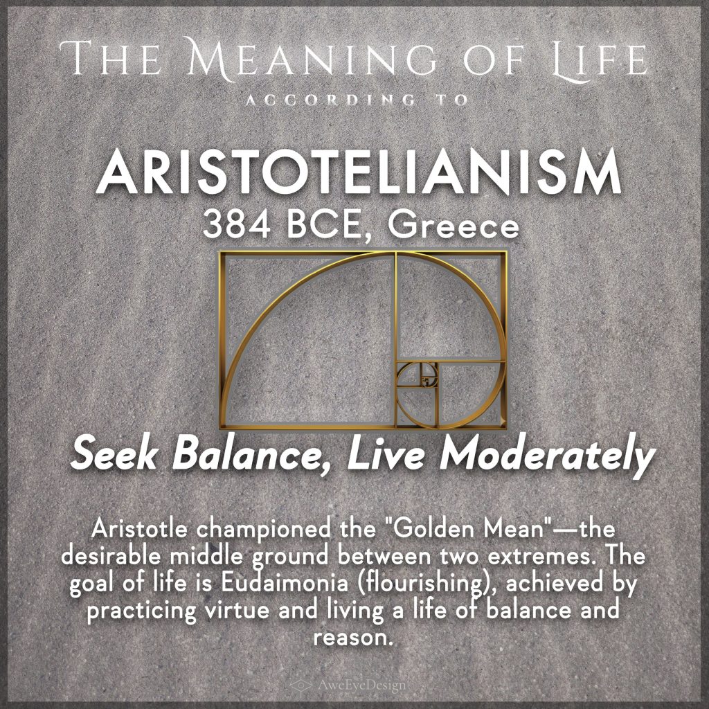 Aristotle championed the “Golden Mean”—the desirable middle ground between two extremes. The goal of life is Eudaimonia (flourishing), achieved by practicing virtue and living a life of balance and reason.