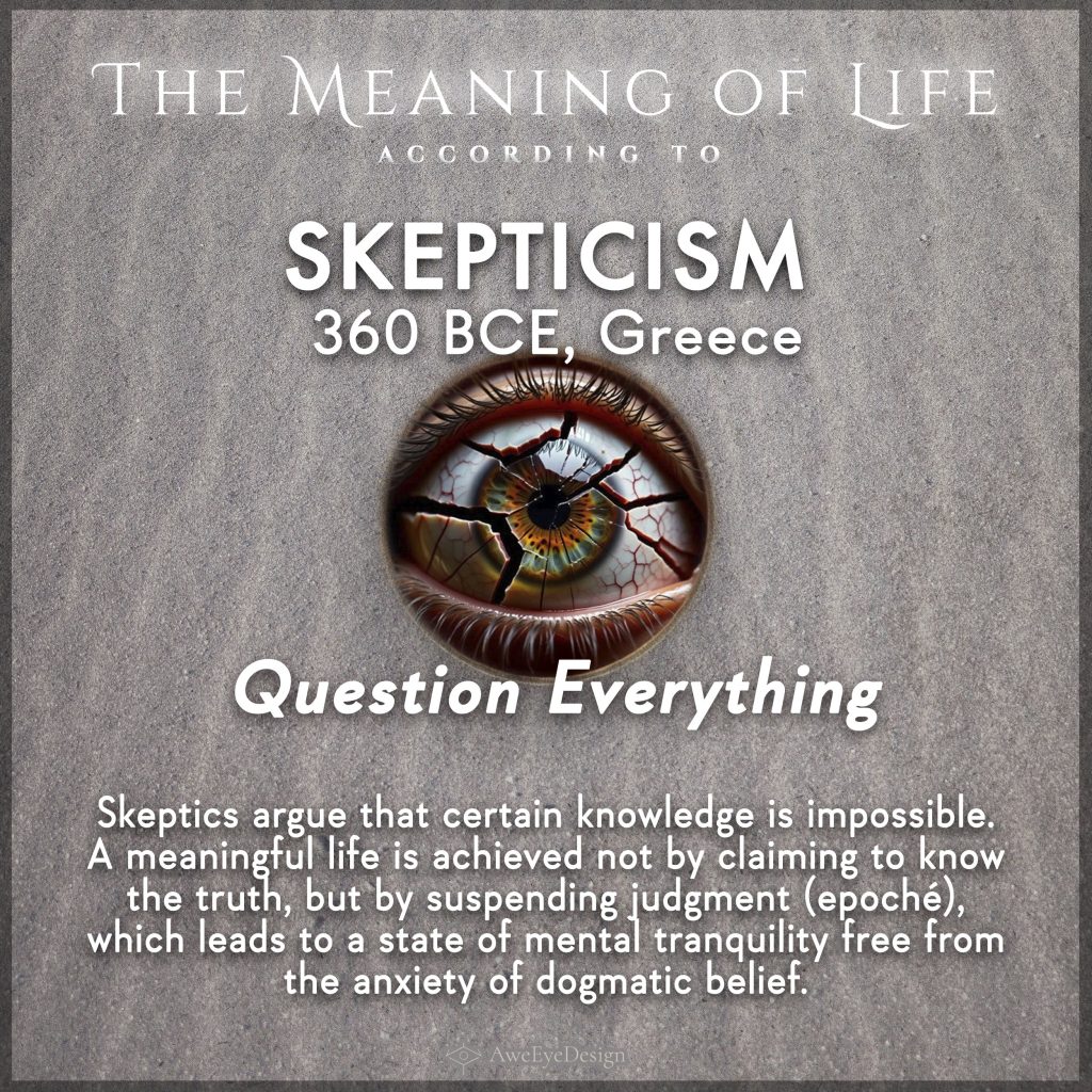 Skeptics argue that certain knowledge is impossible. A meaningful life is achieved not by claiming to know the truth, but by suspending judgment (epoché), which leads to a state of mental tranquility free from the anxiety of dogmatic belief.