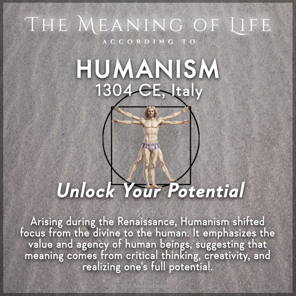 Arising during the Renaissance, Humanism shifted focus from the divine to the human. It emphasizes the value and agency of human beings, suggesting that meaning comes from critical thinking, creativity, and realizing one’s full potential.