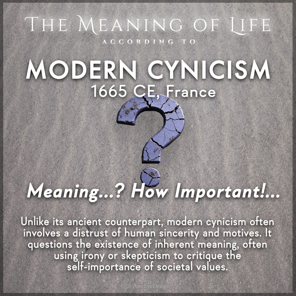 Unlike its ancient counterpart, modern cynicism often involves a distrust of human sincerity and motives. It questions the existence of inherent meaning, often using irony or skepticism to critique the self-importance of societal values.