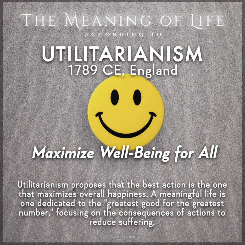 Utilitarianism proposes that the best action is the one that maximizes overall happiness. A meaningful life is one dedicated to the “greatest good for the greatest number,” focusing on the consequences of actions to reduce suffering.