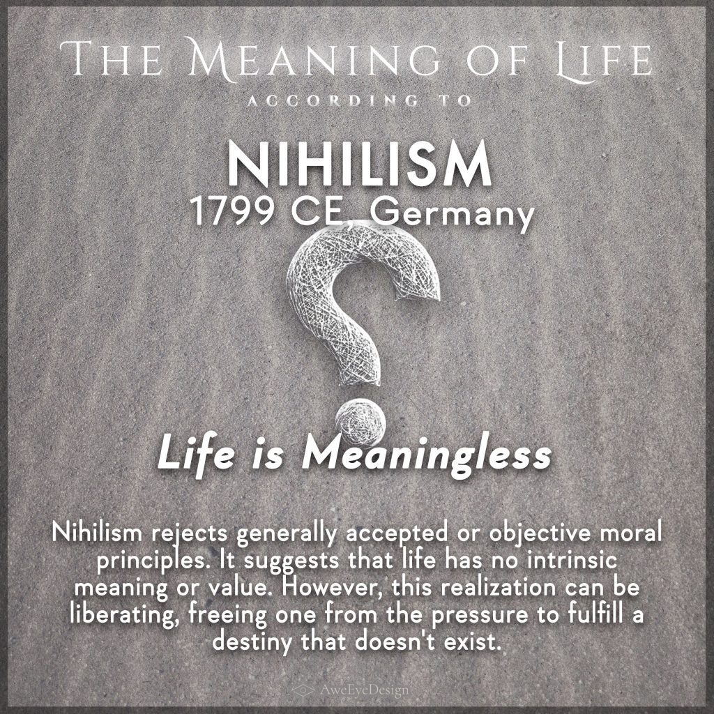 Nihilism rejects generally accepted or objective moral principles. It suggests that life has no intrinsic meaning or value. However, this realization can be liberating, freeing one from the pressure to fulfill a destiny that doesn’t exist.