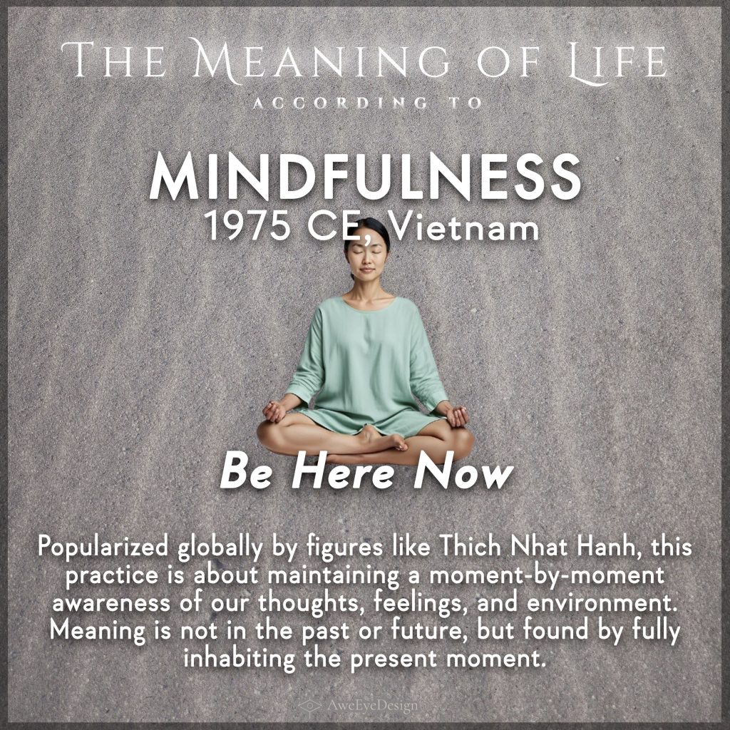 Popularized globally by figures like Thich Nhat Hanh, this practice is about maintaining a moment-by-moment awareness of our thoughts, feelings, and environment. Meaning is not in the past or future, but found by fully inhabiting the present moment.