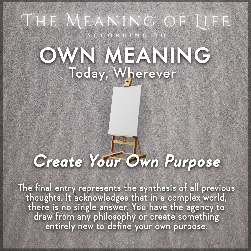 The final entry represents the synthesis of all previous thoughts. It acknowledges that in a complex world, there is no single answer. You have the agency to draw from any philosophy or create something entirely new to define your own purpose.